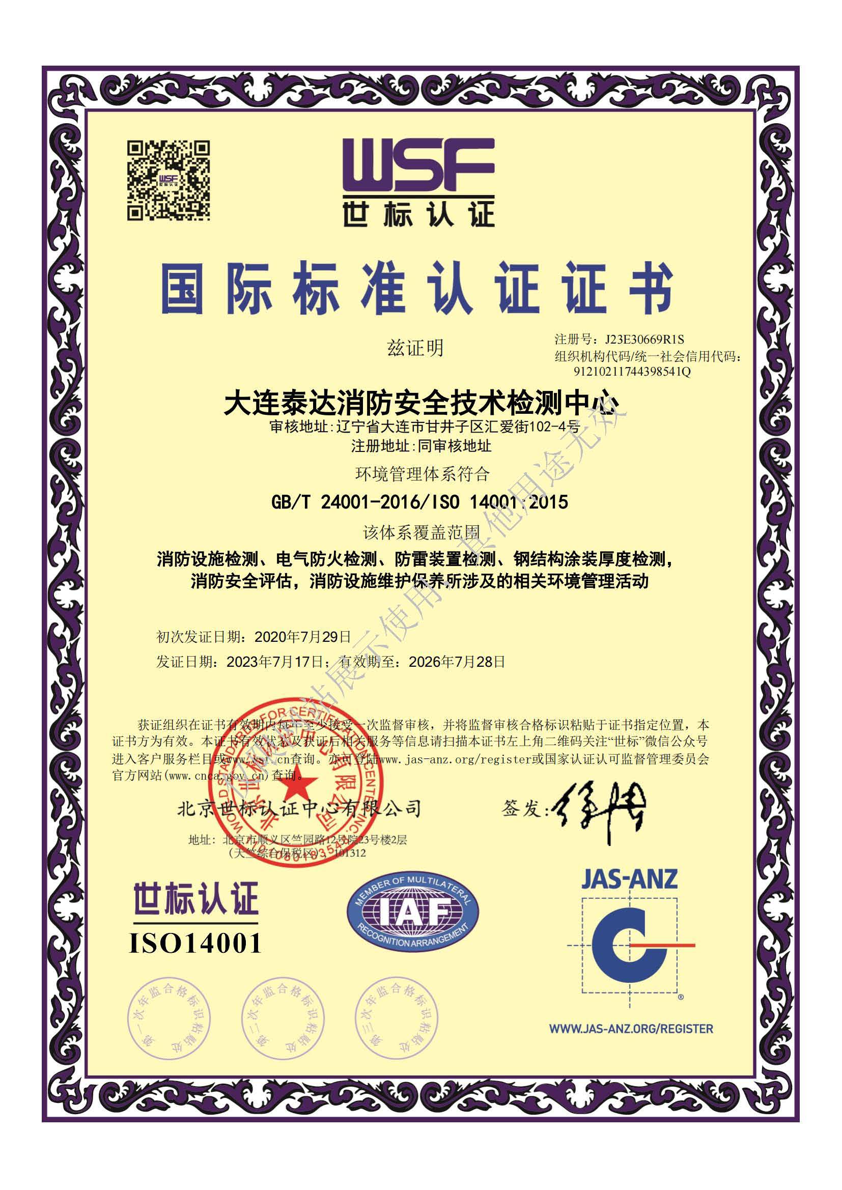 · 是經(jīng)“社會(huì)消防技術(shù)服務(wù)信息系統(tǒng)”備案并公示的消防技術(shù)服務(wù)機(jī)構(gòu),已取得中國(guó)氣象局頒發(fā)的雷電防護(hù)裝置檢測(cè)資質(zhì)證書、遼寧省質(zhì)量技術(shù)監(jiān)督局審核批準(zhǔn)的檢驗(yàn)檢測(cè)機(jī)構(gòu)資質(zhì)認(rèn)定證書(CMA)及包括消防檢測(cè)、電氣檢測(cè)、雷電防護(hù)裝置檢測(cè)、防火涂層厚度檢測(cè)等在內(nèi)的200余項(xiàng)檢驗(yàn)檢測(cè)能力,取得大連市應(yīng)急管理局頒發(fā)的安全生產(chǎn)標(biāo)準(zhǔn)化證書,獲得質(zhì)量管理體系、環(huán)境管理體系、職業(yè)健康安全管理體系認(rèn)證證書,是經(jīng)備案的高新技術(shù)企業(yè),可獨(dú)立出具具有證明作用的檢測(cè)報(bào)告。